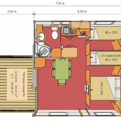 Chalet pour 4/5 personnes ( 35 m²) comprenant :
